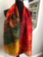 Olyan mint egy festmény, gyönyörű képeket lehet selyemre festeni, ehhez azonban gyakran egy speciális alapot kell felvinni a selyemre, ami megakadályozza festék futását. Ennek a sálnak a virágai hasonlítanak erre a technikára, persze "alapozás" nélkül.
